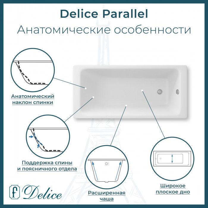Ванна чугунная Delice Parallel DLR220504-AS 160x70 купить