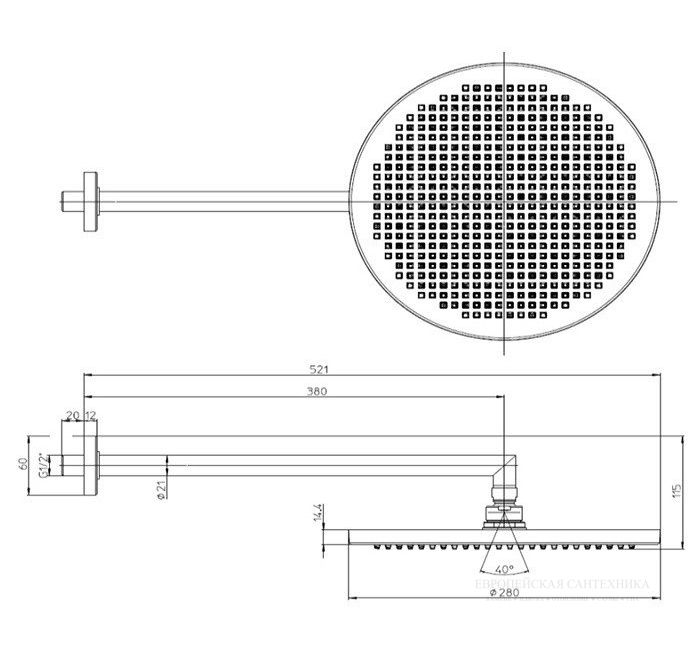 • Размер верхнего душа, см: