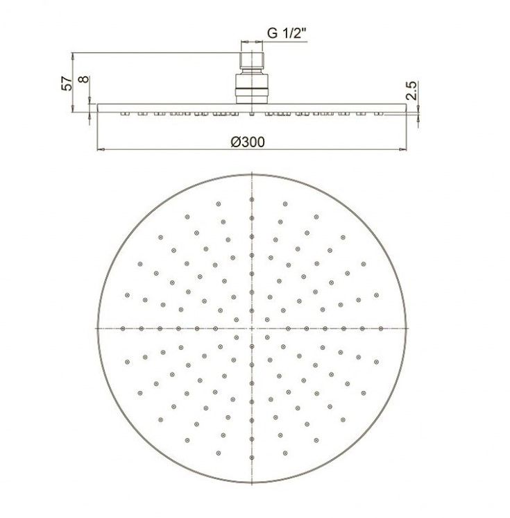• Размер верхнего душа, см: