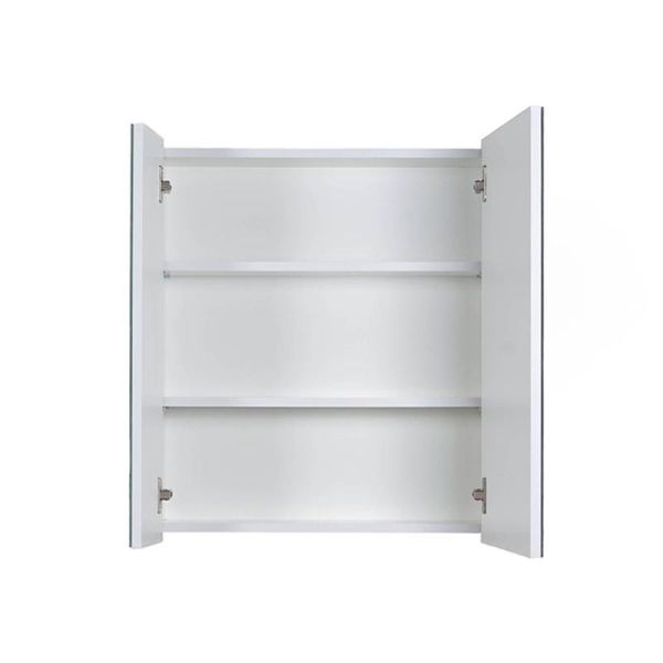 Зеркальный шкаф (две створки). Фасад зеркальное полотно, корпус ЛДСП - белый глянец. Дверцы с механизмом доводчика, обеспечивающим плавное закрывание. В комплекте две полки ДСП.